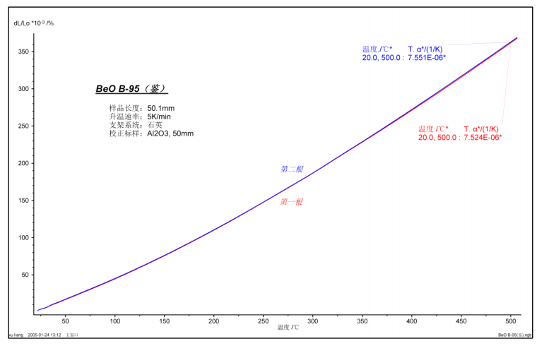 1、氧化铍样品的升温膨胀过程测试